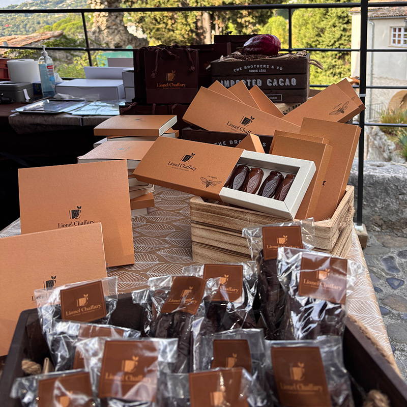Pour ce projet, j’ai eu le plaisir d’accompagner Lionel Chaffary, artisan chocolatier passionné installé à Saint-Paul-de-Vence, dans la création de son univers visuel complet.
